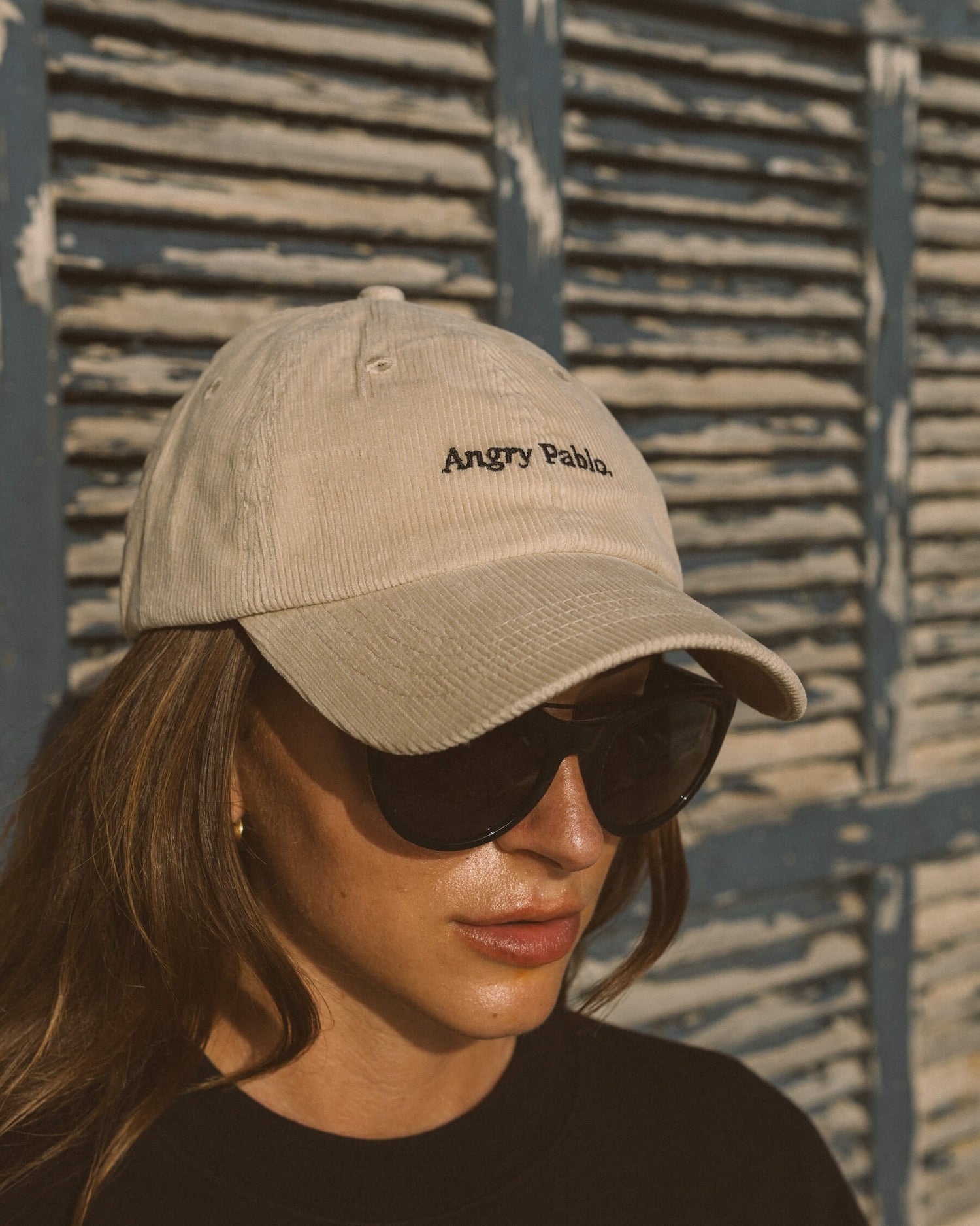 A classic baseball cap silhouette, reimagined in premium materials. Made from heavyweight corduroy cotton for a soft yet structured feel, it features an adjustable Velcro strap for a subtle sporty edge. One size fits all (57cm circumference). Effortless, everyday style — the Angry Pablo way.